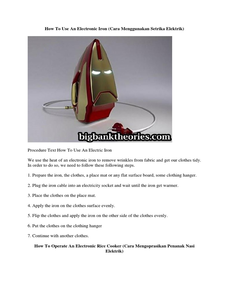 Contoh Procedure Text Tentang Cara Pengoprasian Alat Elektronik 1. Add ice cubes and a little water then cover the top of the blender. Oleh Adian Saputra Diposting pada 20032021.